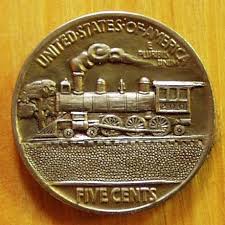 The Buffalo nickel shows a Native American on one side and a North American Bison on the other. It was minted from 1913-1938, the minimum a coin can be minted due to an 1890 act of congress. It had a lot of die and cast problems and so no one objected to replacing it with the Jefferson nickel. They are easy to find in coin stores and should be pretty cheap because on many coins the date was easily worn down to the point where many existing coins have no date. Also the hill that the buffalo stands on gets worn easily. For a slight historical note during the depression hobo's (actual engravers also jumped into the game) would take the buffalo nickels and carve designs into them. I have seen one picture where the Indian head has been turned into Santa Claus. The large head and buffalo made this the coin of choice because there was a lot of space to work with. I don't own any of these coins yet but I keep looking. Here are a couple of good examples I found: